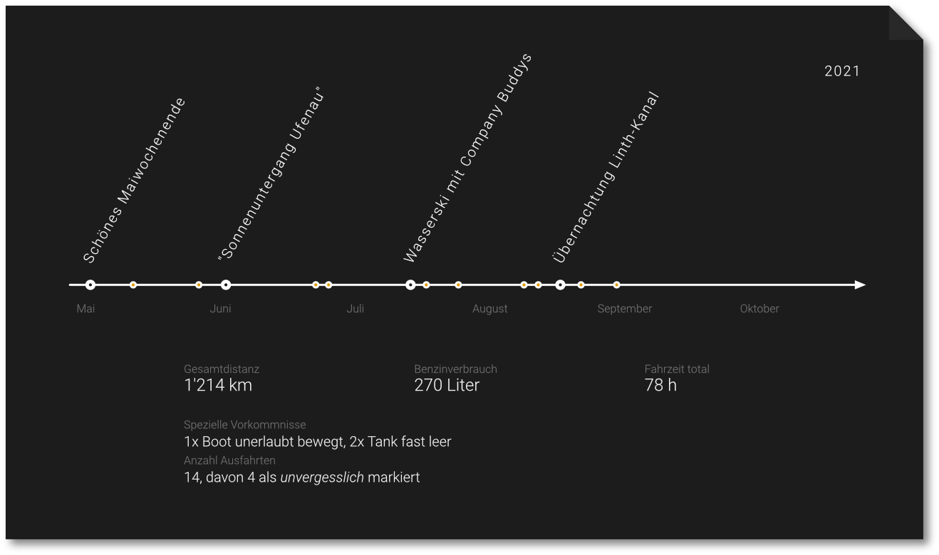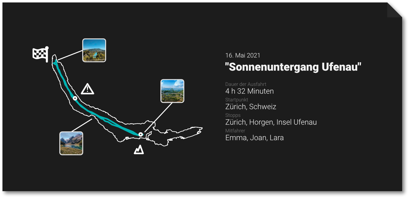 Without any user interaction, we automatically assess the location data, segment it into different trips and journeys, augment it with geographical data such as shore zones, fuel stations, road types or elevation, and summarize and present it to you in real-time using various visualizations across the different apps or for retrieval via our API.